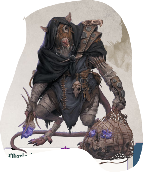 This albino ratling warlock of the rat god is the spiritual leader of the colony.