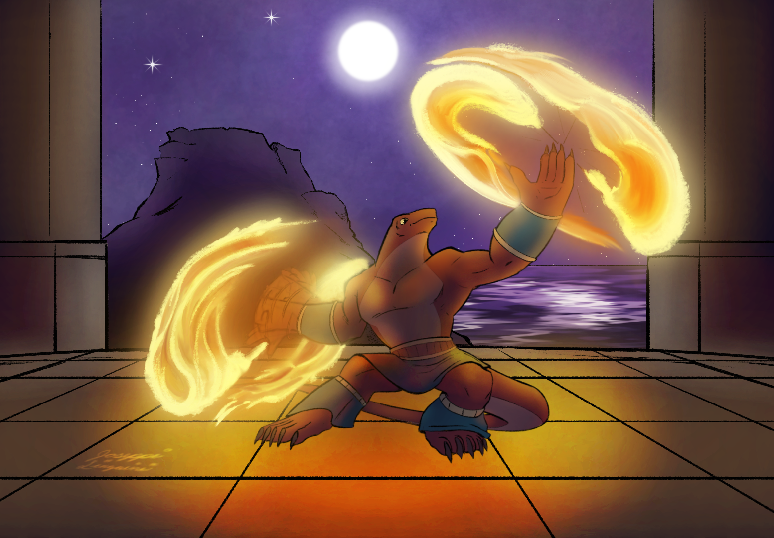 Hrrak'mar are famous for their tradition of the Fire Dance, which grew out of early courtship displays into an all-night festival put on in most communities. The largest festivals hosted by the largest centres draw performers and audiences from hundreds of miles around and can even draw crowds of non-Hrrak'mar "Cold-folk" to brave the scorching conditions of a typical Hrrak'mar city.