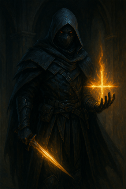 Nightstalkers are the covert blades of the Order of the Sacred Flame—rogues sworn to the All-Father who walk quietly where the Church cannot be seen to act, stalking heretics, Rift-touched horrors, and rogue spellcasters through alleys, sanctums, and war zones. Where Confessors interrogate in the light and Templars wage holy war in the open, Nightstalkers move in silence—slipping past wards, shadowing their quarry for days, and ending blasphemy with a single, consecrated strike.