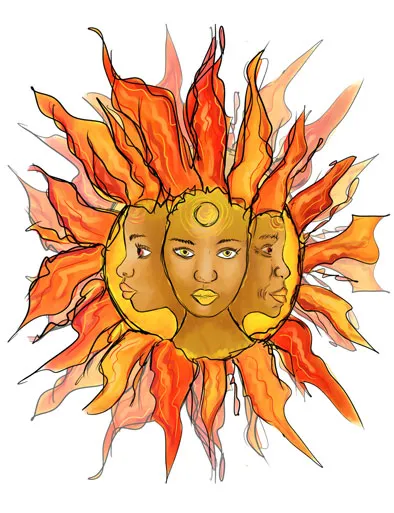 Fiery Element: Here you will find everything related to the elemental powers of the spirited and ambitious fire and learn about the firewalkers' belief in the three-faced sun goddess and other fire gods.