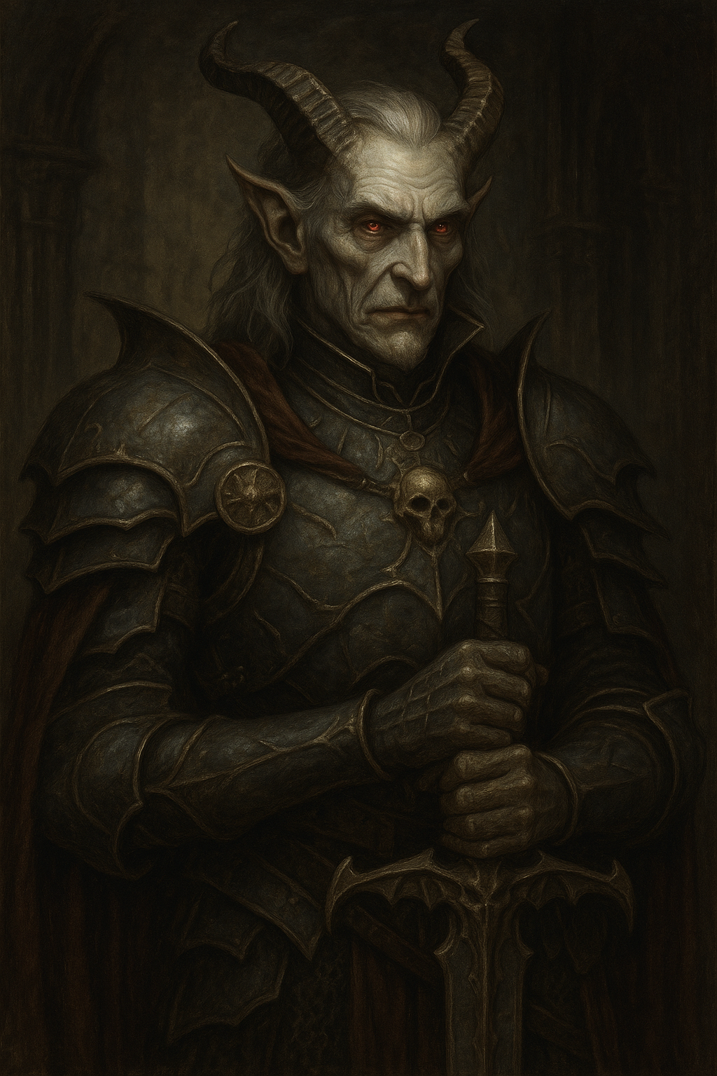 Khöndor Vashir was once a mortal warlord on the frozen steppes, who offered his blood and unending devotion to Xonim in order to serve the Mistress of magic and night. He now serves as a warrior and champion, bearing magical treasures infused with the goddess’s power.