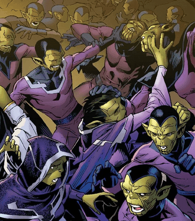 Alien, Skrull: The character is a member of the Skrull, a reptilian humanoid race of shape-shifters who formed the interstellar Skrull Empire. In their natural form, they have green skin, red or green eyes, pointed ears and furrowed chins. They sprang from the planet Skrullos in the Andromeda Galaxy.
