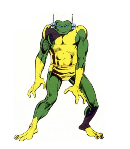 The Frog Battle Suit was originally invented by the Engineers at E.S.P. Technologies, who designed this battle suit and others around the powers and the look of animals. It is made from a tough, durable, lightweight, more protective form of Kevlar, and is also fitted with a communication array.