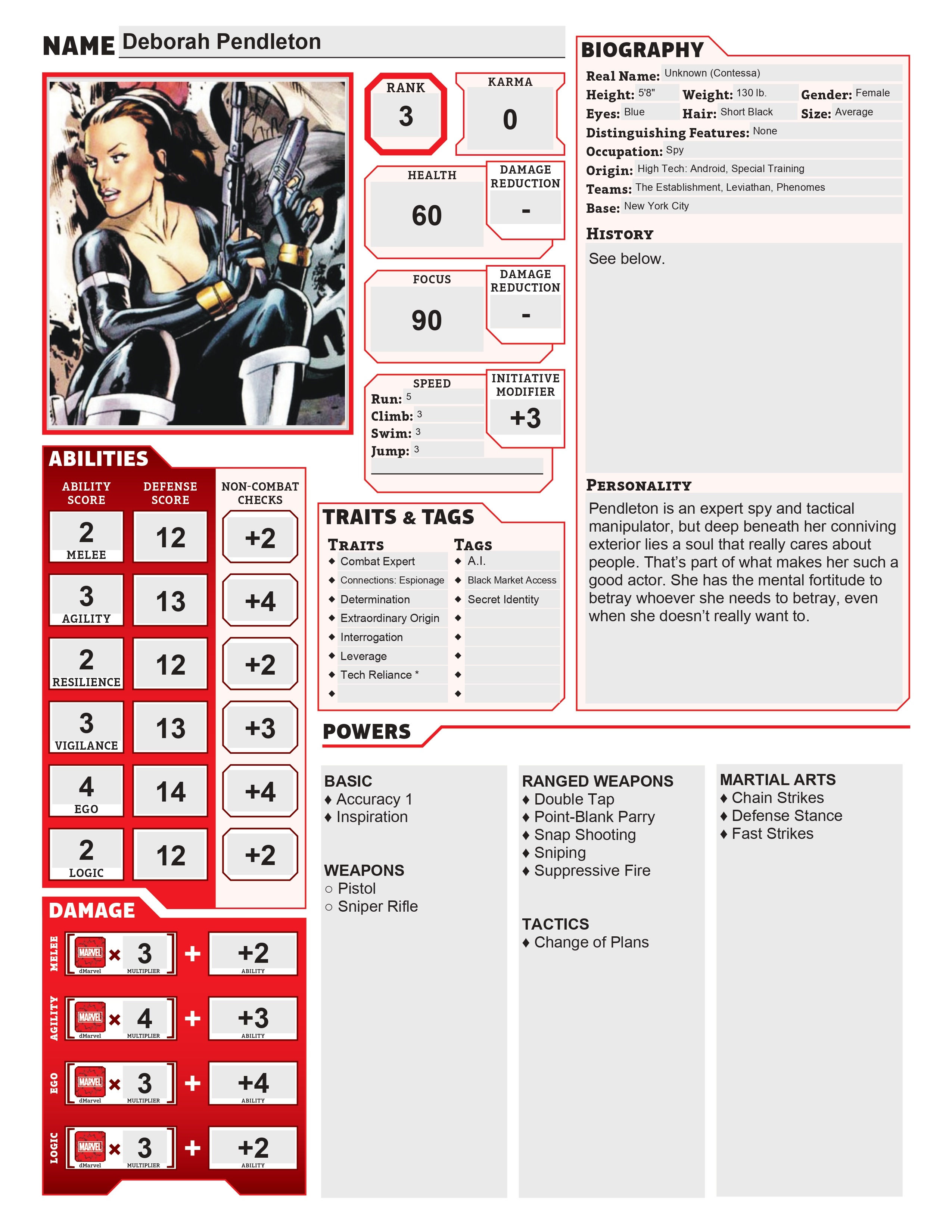 After her parents were killed in a senseless bombing, Deborah Pendleton (The Contessa) joined Covert Alpha and dedicated the rest of her life to preventing similar tragedies. Or at least, that was the cover story. In truth, both Pendleton and her supposed parents were agents of an ancient Russian spy cell called Tsarina, and she only joined Covert Alpha to ensure that the organization never laid hands on any of Tsarina’s world-shattering technology.