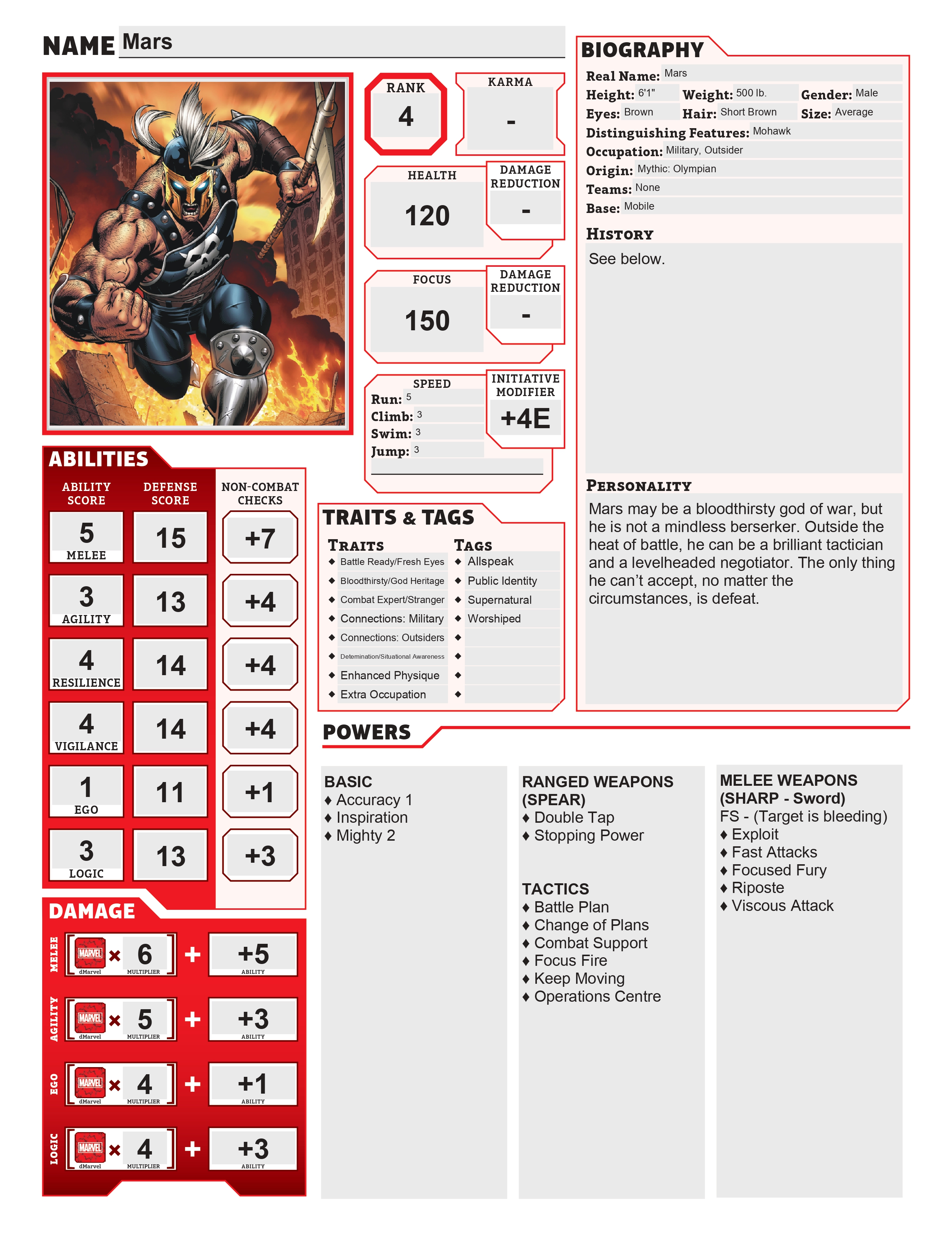 As the Olympian god of war, Mars has had a hand in humanity’s conflicts for as long as the species has existed. Although he visited Earth to intervene in existing wars and foment new ones, he rarely spent extended periods on the planet—until the modern era, when his son Phobos was born.
