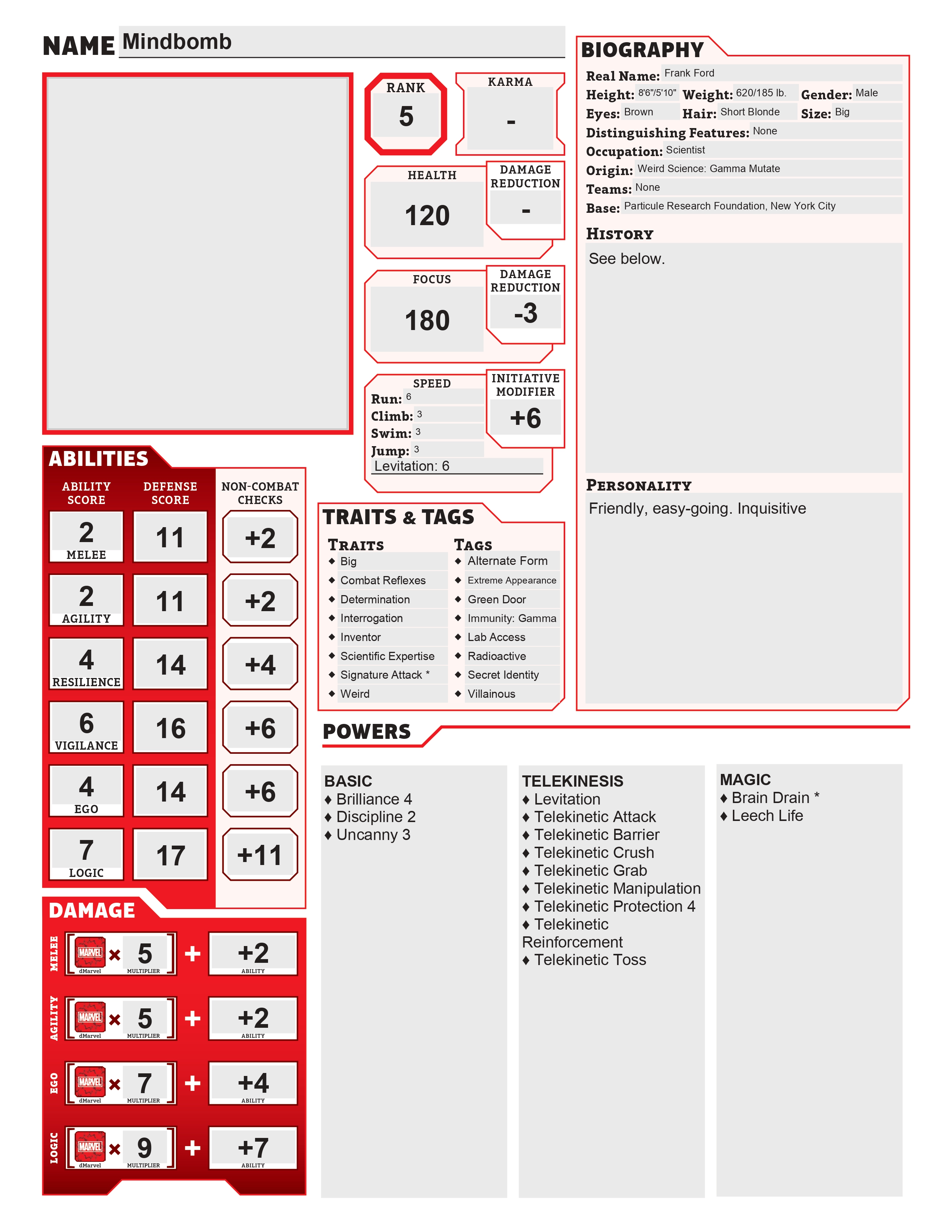 Mindbomb is the father of Visage (Lucy De Witte) who he abandoned when she was just a baby.