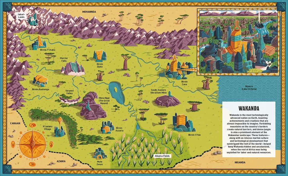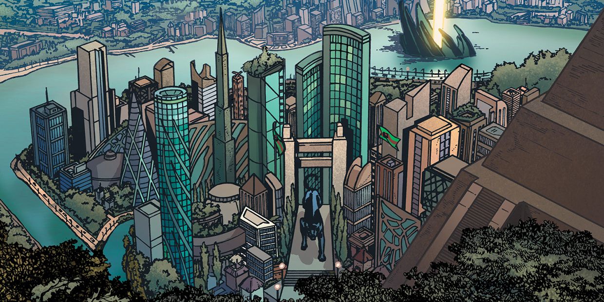 For much of its history, Wakanda was almost completely unknown to the outside world. Developing on its own, unhindered by wars and spurred on by the amazing properties of vibranium, the nation developed a rich culture and language, including elite universities and the super-hero training facility known as the Wakandan School for Alternative Studies. Much of this development was spurred by the Black Panther T’Chaka, who saw outside explorers as a threat and hid Wakanda from the world to protect its people. T’Chaka began to sell tiny amounts of vibranium abroad for research purposes, using the knowledge gained to develop his homeland’s culture and technology. Wakandan students also went abroad to the world’s best universities before returning home to further the country’s development—all while T’Chaka kept the country as secret as he could manage in an era of increasing exploration and technology. This tension between protecting Wakanda and being a good global citizen has preoccupied every Black Panther since at least the beginning of the twentieth century.