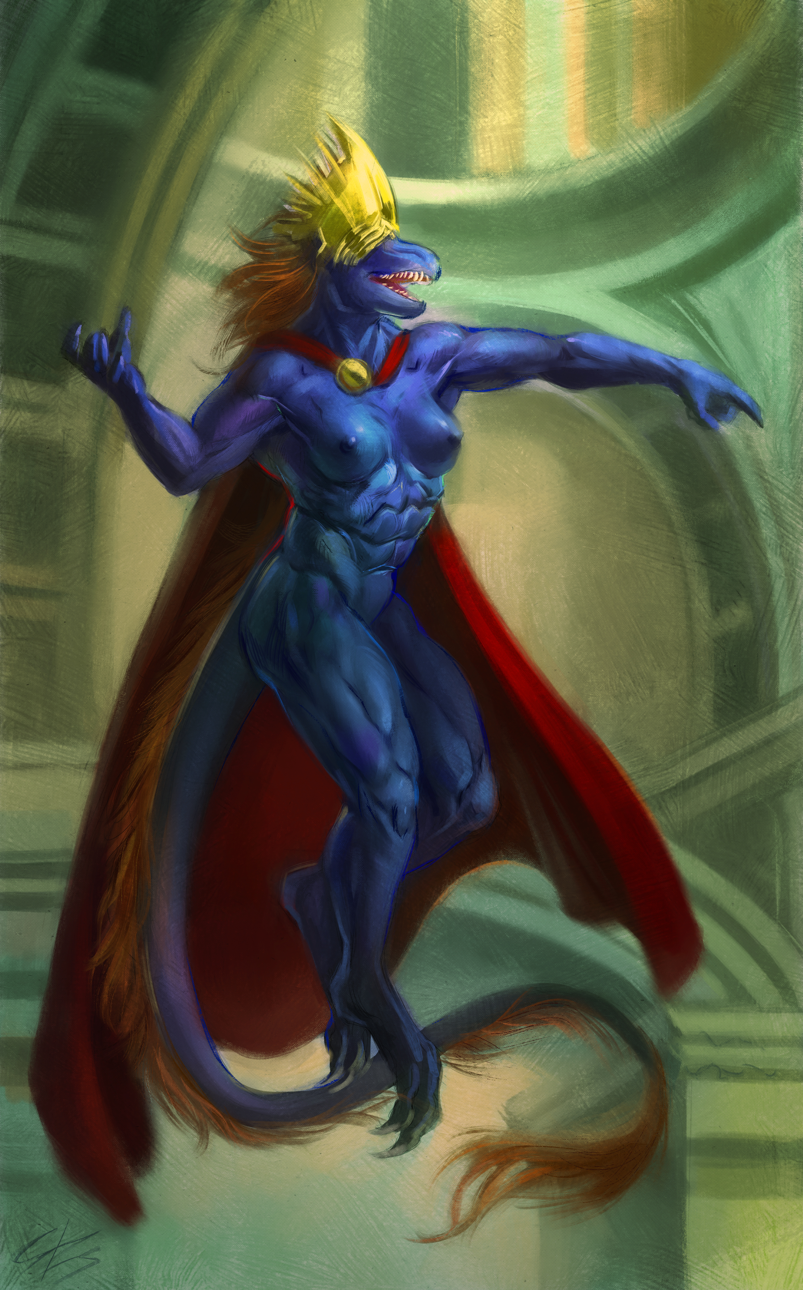 From Sicarsis though, it’s all downhill. She served as Empress following that harrowing conflict, rebuilding Rodinia’s power and founding the Rodinian Empire, ruling over it for 1.2 million years. Initially she made a genuine attempt to model the Empire on the peace-loving model of the Nadrakians, who made this a condition of their sacrifice. But Rodinians are still mortal in mindset and not fit to have such power, Nyza least of all. A series of poor policy decisions lead to embarrassing foreign policy blunders and scandals that ate away at her public support until she lost control of the Imperial Bequeathing Sword, whereupon she ceased to be Empress.