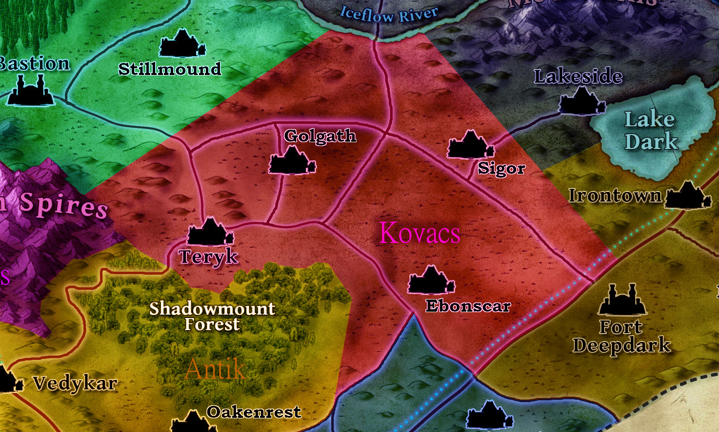 Kirill ir'Kovacs. It contains the cities of Teryk, Golgath, Sigor and Ebonscar.