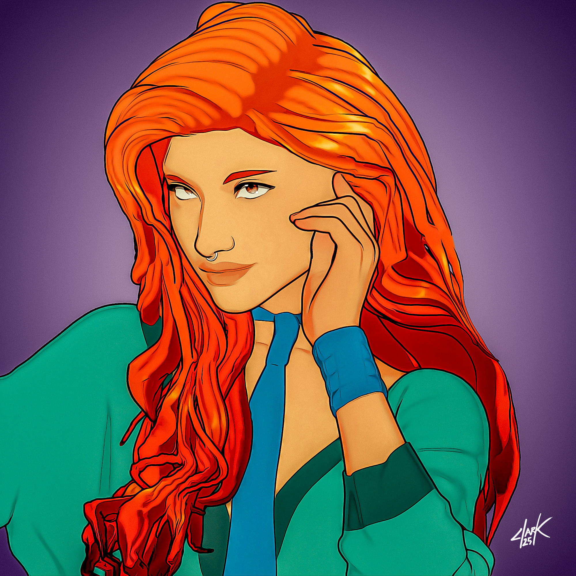 Kef sports a septum piercing, a piece of jewelry I’ve tended to avoid in my illustrations until now—mostly because looking at them makes me wince in sympathetic pain. I can’t imagine how much they must hurt, so I end up not wanting to put any of my characters through that. But for someone reason this time, with Kef, it felt like she just needed the nose ring.