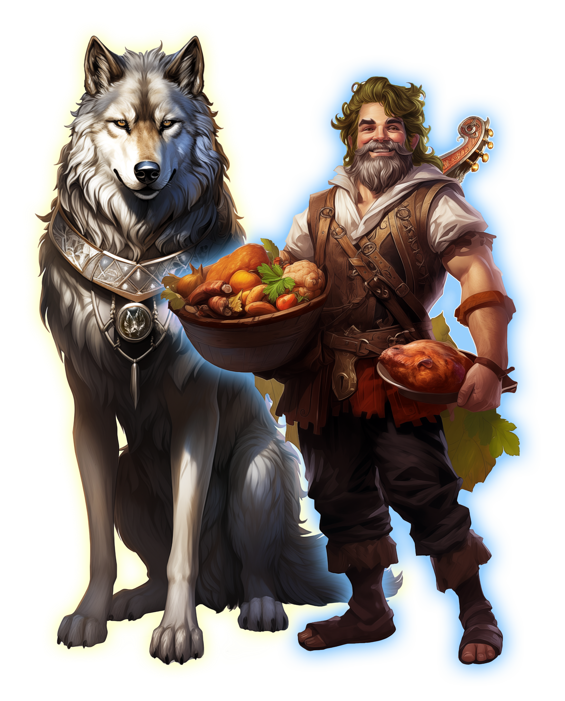 Como gnomo alegre siempre un banquete a mis invitados he de servir, creeré en la buena intención de mi aliado y solo daré la espalda si mi dignidad pudiera perder. Sobre el manto de la tierra voy a descansar, de ella me alimentaré y caminaré en el mundo sonriendo ante la adversidad.Dominios divinos