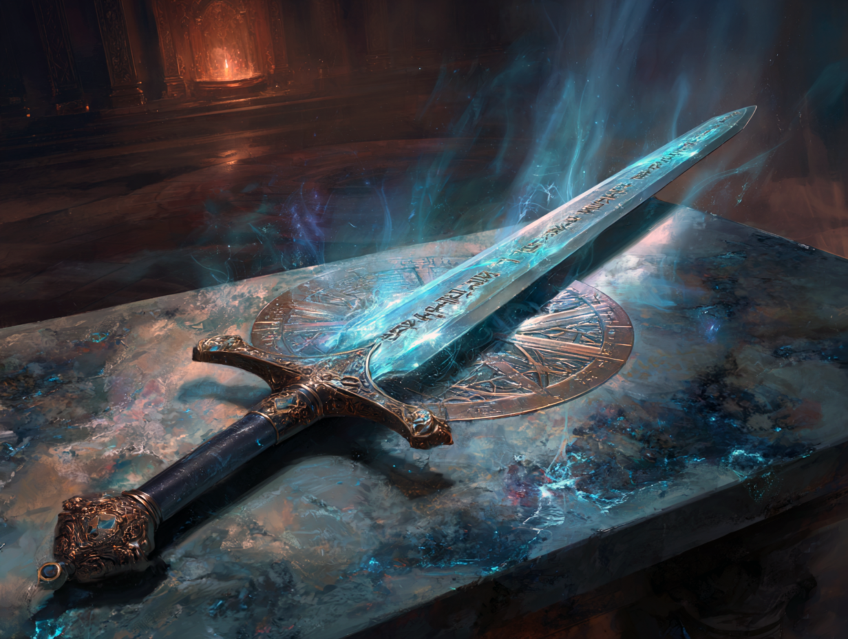 Cuando estuvo completa, la entregó a un grupo de humanos descendientes de un antiguo linaje guerrero. Usando un avatar, los guio hacia un plano donde combatieron abominaciones de Arrenjel, aniquilándolas como si pudieran discernir su anatomía. Luego se unieron a una colonia de elfos acorralada por orcos y muertos vivientes. Allí también vencieron, acabando con los enemigos vivos y dejándolos en un estado en el que serían inútiles incluso como no-muertos. La espada acertaba siempre según el adversario.