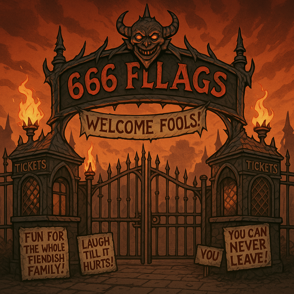 (A triumphant calliope flourish followed by laughter that distorts into static.)