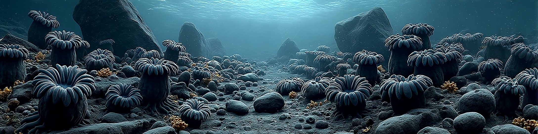 The Gravetide Anemone is a squat, radial organism whose body is comprised of a tough, leathery outer column that adheres firmly to stone, bone, or coral using a broad, muscular pedal disc. Its tentacles, tupically 20-30 in number, are short, thick, and slightly flattened, giving them a heavy, drooping appreance unlike the delicate filaments of many anemones. Each tentacle contains dense bundles of meatocysts use for capturing small prey, though these stinging cells are miled anough that larger creatures barely register them. The anemone's signature trait comes from specialized pigment sacs embedded along the tentacles and upper coumn; when thretened, these sacs rupture to release a fine, downward-sinking particulate that resembles falling ash or drifting shadow. Internally the Gravetide Anemone maintains a simple gastric cavity, but its tissues are unusually fibrous, allowing it to withstand the abrasive current and gritty environment of ruins and grave-sites where it most often thrives.
