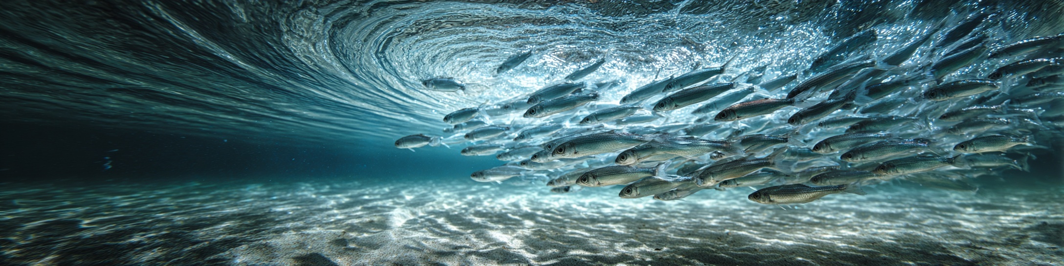 Whisperback Mullets are streamlined, torpedo-shaped fish averaging from 6-8 inches in length, built for swift coordinated movement within tight schools. Their scales are small, smooth, and highly reflective, giving them a silvery sheen that shifts to a soft bluish tint in deeper water. The fish's most distinctive feature is the whisper-line, a thin opalescent stripe running along the dorsal ridge, formed by specialized reflective cells that help individuals maintain alignment with thier school by catching even minimal light. Their find are short but agile, allow for sudden turns and sychronized evasive maneuvers. Whsiperbacks possess a relatively large lateral line system, granting them heightene sensitivity to vibrations in the water; this adaptation is what enables their near-silent surface rippling behavior and allows entire schools to react as a single organismm when threatened. Internally, they have a small but effieicent swim bladder, letting them move easily between depths without dramtic shifts in buoyancy.