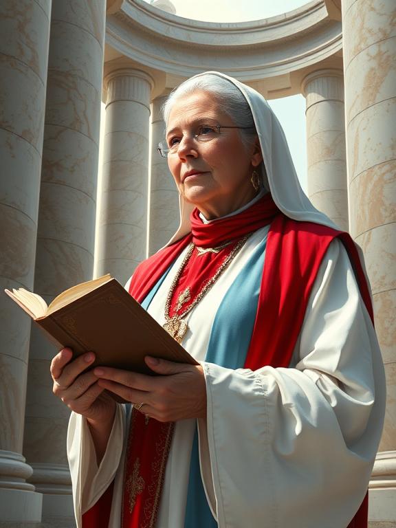 Pralat of Karlstadt, Ambrine Solthar is a semi-famous figure in the Aethel National Church of Lathander. She is a well-known theologian, and several of her treatises have been formalized into church canon law by the Sovereign. She spent more than a decade at the Monastery of the Dawn Unveiled at Klosterdorf, pouring through old tomes and ancient manuscripts of the earliest members of the church, and even foreign teachings and rituals of Lathander, in order to increase both ecclesiastical and common knowledge of Lathander.