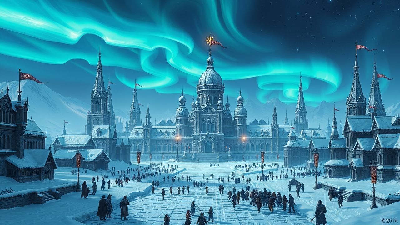 The Royal Square sits in the heart of the city, containing several houses for the extended royal family along the perimeter, as well as a small multipurpose temple. In the middle of the Royal Square is Winterbound Castle, named after Sigurd the Winterbound who founded the kingdom. This is where the monarch lives and rules, and where the Council of Regents meets in the Hall of Starlight in the castle.