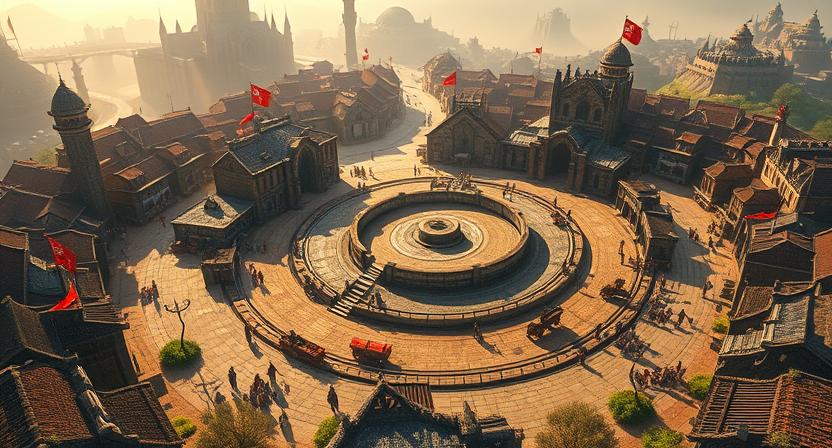 A round plaza where all major roads converge; often home to public announcements and traveling performers.The Ledgerhall