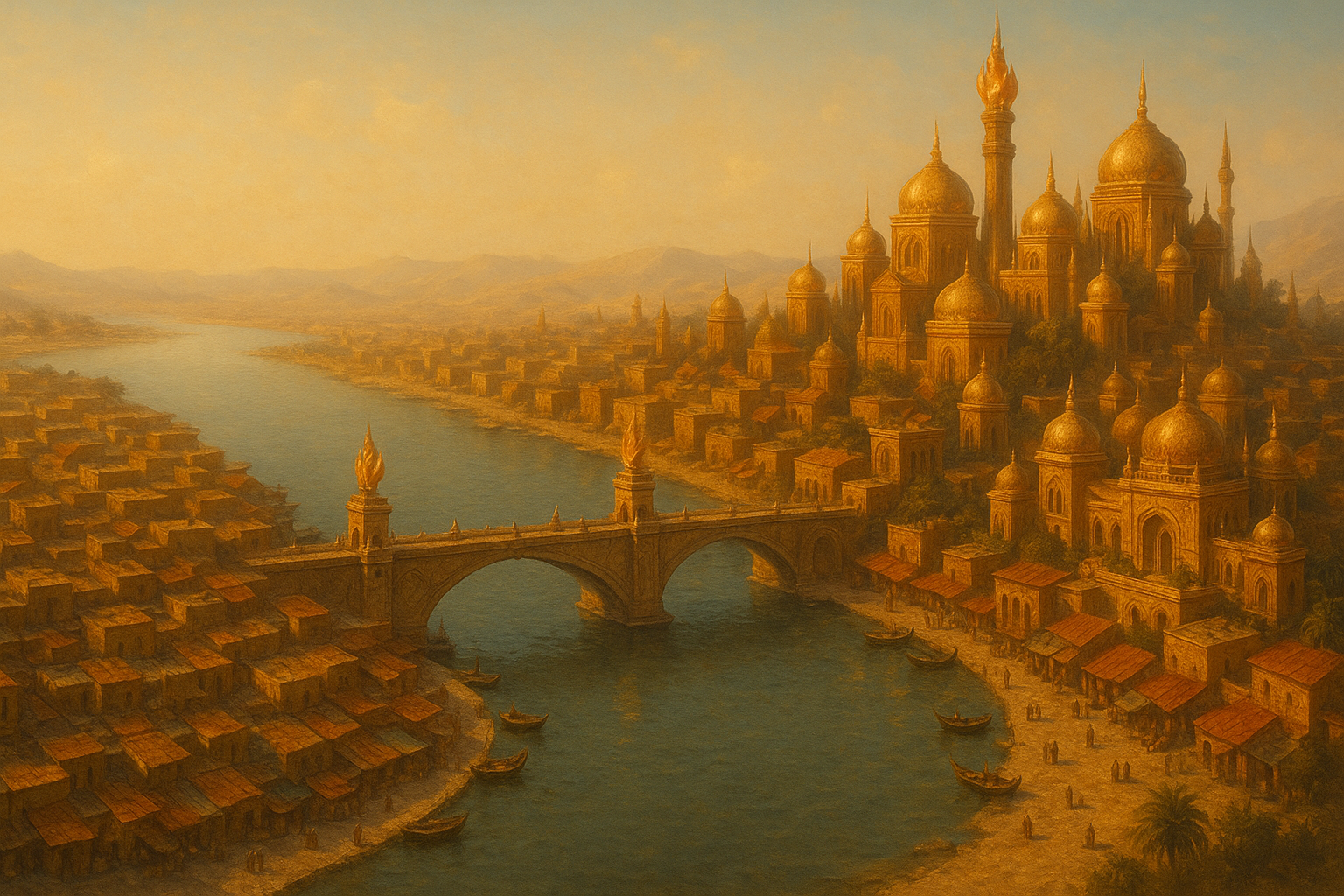 Mayakish is the heart of the Emirate of Sulkara; its political, cultural, and spiritual capital. Situated around the shimmering Lake Farsara, this radiant city is a jewel of fire genasi heritage, famous for its gleaming architecture, canals, ritual bonfires, and deep traditions. Mayakish is a place where the past walks beside the present—where ancient lore and modern artistry fuse in a vivid, beating metropolis.