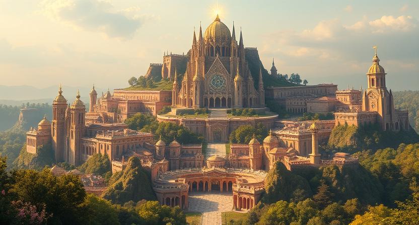 Mecklenberg is the radiant heart of Aethel. It is a gleaming city where faith and law walk hand in hand. Built within the sacred Lumen Forest and home to the Grand Cathedral of Light, the city serves as the seat of the Sovereign, the Koster dynasty, and the Church of Lathander. Its streets are orderly and serene, lined with sunstone-colored buildings and flowering trees, but behind the gold-trimmed marble and glass lies a vast bureaucracy and a crucible of political intrigue.