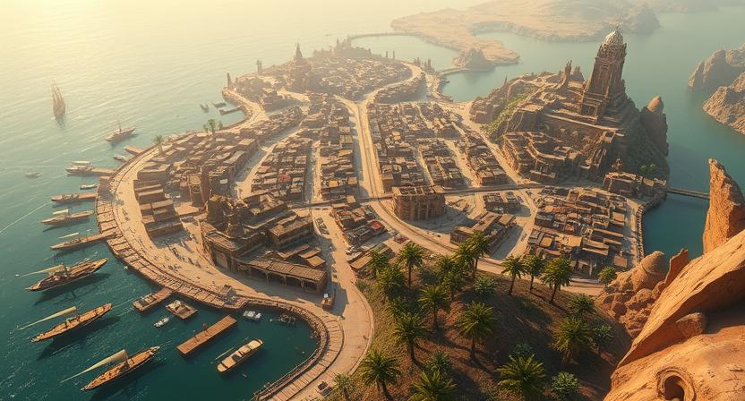 Port Namel is the salt-swept jewel of Aethel’s western coast, a vibrant, bustling port city perched on the edge of the Sea of Mists. It is the principal gateway for trade goods entering the western heartland, supplying the inland cities south of Lake Genhout. With its tightly packed districts, lively marketplaces, and scent of brine and spices, Namel offers equal measures of opportunity and danger.