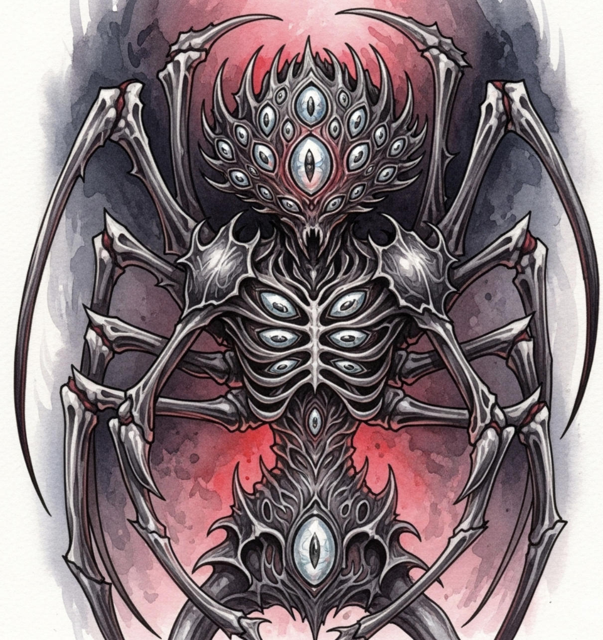 Virezzh is a god of betrayal, curses, bloodlines, and perverse fate. They are depicted as a spindly, arachnid-like figure with a thousand mirrored eyes and a voice that whispers directly into dreams. Virezzh weaves destinies like webs, entangling mortals in cycles of vengeance, obsession, and decay.