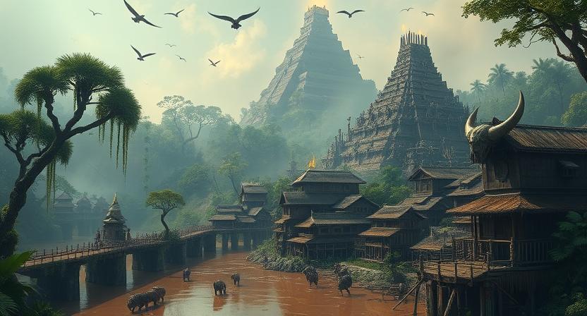 Zugbuk is the untamed emerald heart of the Vaaskyr Empire, nestled in a lush and perilous jungle along a wide, serpent-like river that flows into the ocean. The city sits on stilted platforms and layered terraces, overgrown with thick foliage and pulsing with the sounds of beasts and drums. Unlike the draconic cities of the Empire, Zugbuk is populated mostly by orcs.