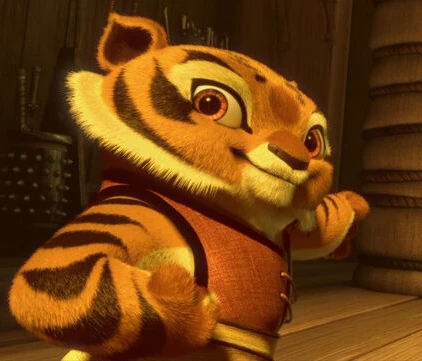 His fur is a rich golden-orange with distinct black stripes that frame his expressive amber eyes. He is small and lithe, with a mixture of innocence and determination in his gaze. Despite his youth, his agile movements and the sharpness in his eyes hint at his potential for agility and combat prowess.