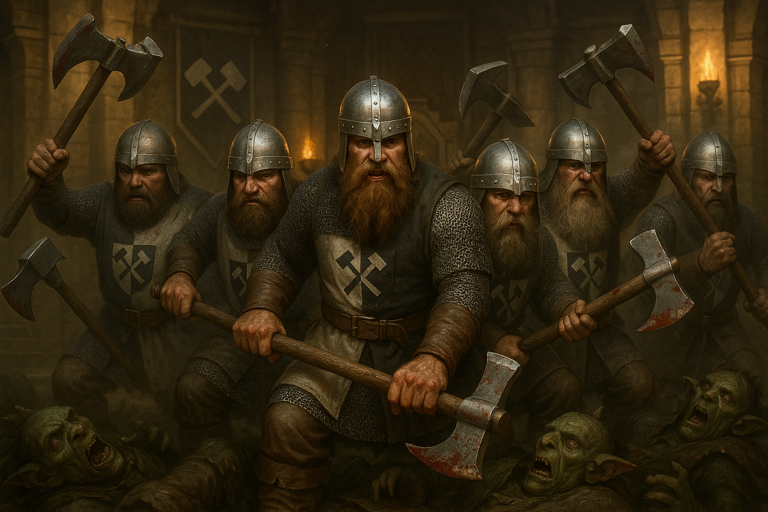 Their name drives from the pointed gems they used to mine, and this is reflected in their unusual pointed axes. Those who wield them swear that they piece plate better than any other, but the use of these axes is limited only to these professional bodyguards