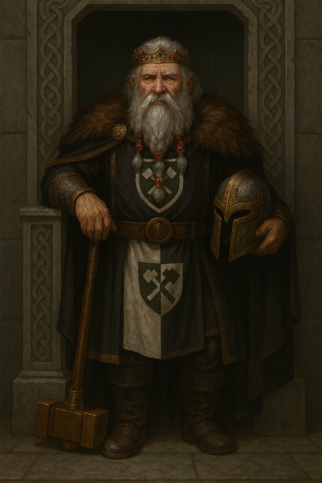 He married ……. From House Ironhelm And has 6 children. He does not trust his children, so has selected a nephew Shamus Emberforge as his hier.