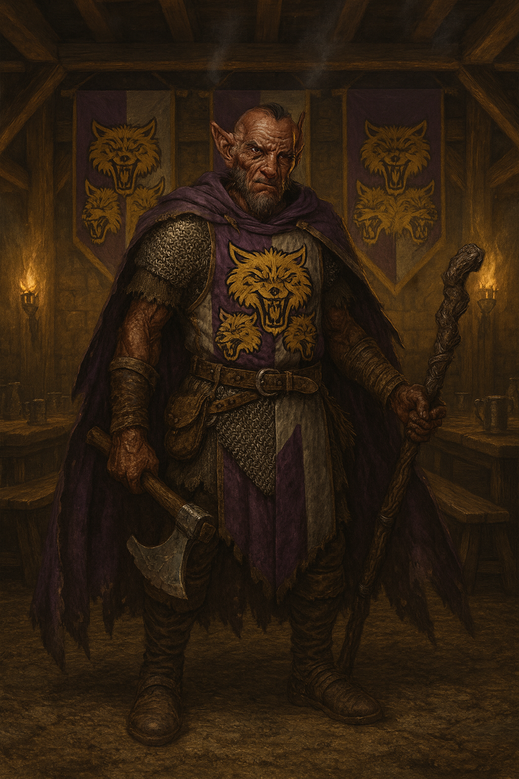 Otto Bloodfang was never the biggest brute in the halls of Ironfang Keep yet the scars on his cheeks mark victories won by craft. He claimed the title Timir after outwitting three heavier rivals, binding their boasts into a trap that killed each one in turn. Otto learned hedge sorcery from a lesser travelling Pheonix Mages and gained enough power to make him dangerous on the battlefield: smoke, poison, and mind control are his favourite methods to hurt. With these he gained control, and took contracts others avoided, hunting raiders, taxing caravans, and building closer relations to House Aquilar , who sponsored House Bloodfang into nobility.