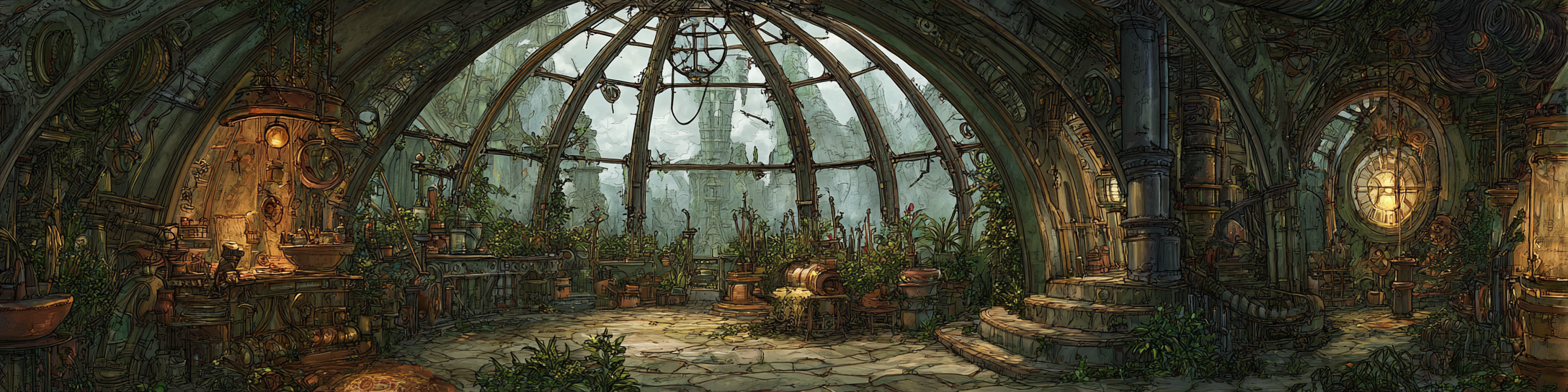 Akad egy néhai kilátóterem, egy hatalmas kristályoculusszal az oldalában, mely a település jelenleg feltárt legmagasabb helysége. A déli tájolása miatt a driádok itt alakították ki a védett kertjeiket, amelyek akkor is képesek voltak ellátni az első telepeseket, amikor azok a viharos évszakban a noxadok rajzása miatt elbarikádoztk magukat a hosszú promenádon. A kert azonban nem csak életet ad, de veszélyes is, ezért nem lakják. Amikor időről-időre sziszegve beindul valami a toronyban, akkor az üvegben felvillannak az addig láthatatlan rúnák, és a mágia utat keres magának. A dolgok, amelyekbe a megzabolázatlan mágia belekapaszkodik, megöregszenek. Néhány óra leforgása alatt, akár éveket is, de ez legkevésbé a növényekre van hatással, azok csak szárba szökkennek, gyümölcsöt hoznak. Kockázatos ugyan, de ha nincs más megoldás, akkor idehozzák a súlyos sebesülteket is, ha válságos az állapotuk, ahogy a komoly betegséggel küzdőket is. A sorsuk felől döntsenek a kegyes Ősök…