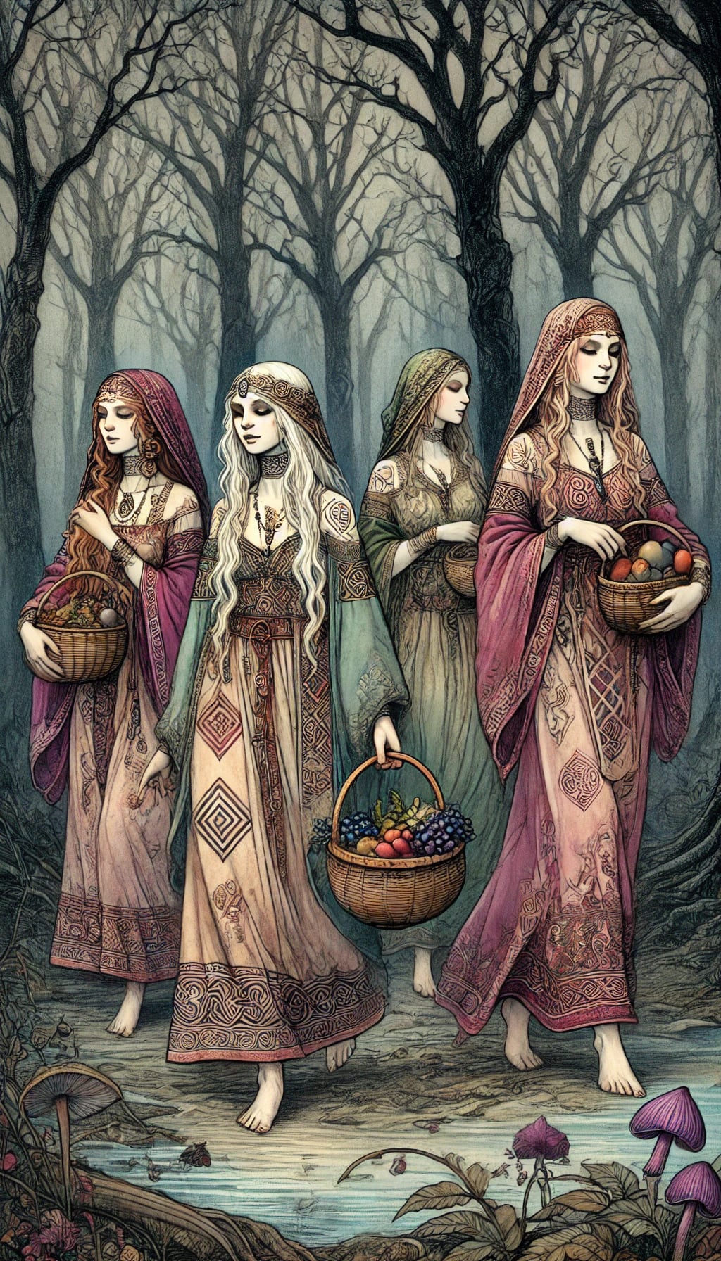 A vértölgy különböző részeiből kinyert festékek a gotik látása számára ezer és egy árnyalatban játszanak, s még a sötétben is jól kivehetők, így a hímzések bonyolultsága és kidolgozottsága a gazdagság egyik fokmérője.