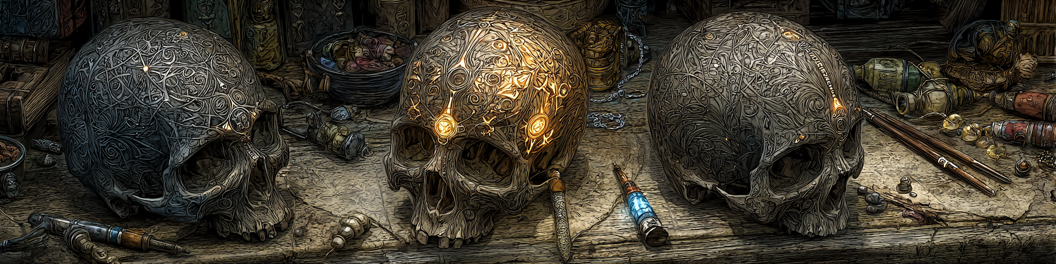 A gotik kultúrájában nagy szerepe van a történeteknek, a meséknek és a legendáknak, amelyek megörökítik az elhunytak tetteit, s ez a koponyafestők szakmájában sincs másképp. Az, hogy a tetteket mely jelekkel örökítik meg, sokszor a koponyafestőn múlik, hisz nem csak esztétikusaknak kell lenniük, de hűen tükrözniük kell a tettek jelentőségét is. Egy igazán jó koponyafestő egyszerre művész, mesemondó és mesterember. Egyszerre festő, ékszerész, csontfaragó és kalligráfus.