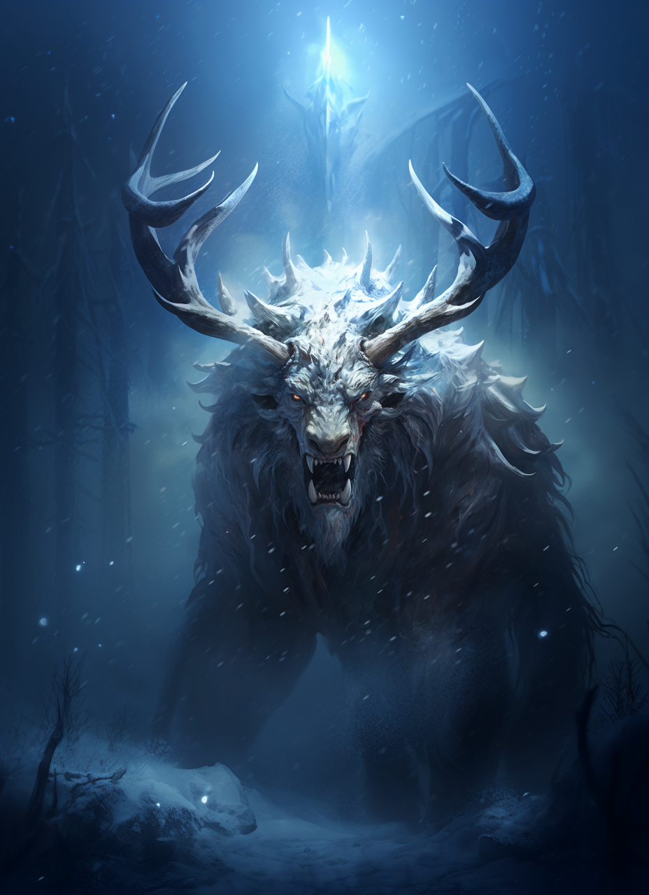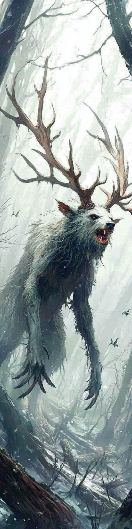 Négylábú alakjukban medveméretű, farkasszerű bestiává változnak, amelyben a férfiak és a nők közötti magasságkülönbség még szembetűnőbb, a nagyobb hímek hátán sokszor asszonyok lovagolnak csatába. Látványosabb azonban az agancskorona, ami a hímeket díszíti. Ezeket előszeretettel fenik, vagy egészítik ki kisebb, borotvaéles pengékkel, hogy a csatában fegyverként használhassák őket a karmaik és a harapásuk mellett. Arasznyi bundájuk általában a hajuk színéhez igazodik, ám számos különleges folt és minta is tarkíthatja őket, amelyeket előszeretettel tetoválnak fel emberi alakjukra is.