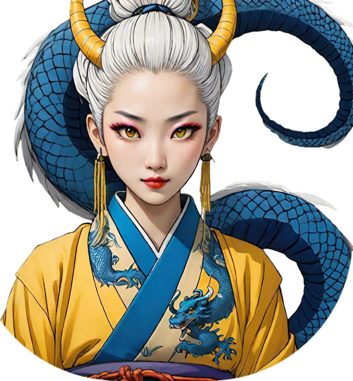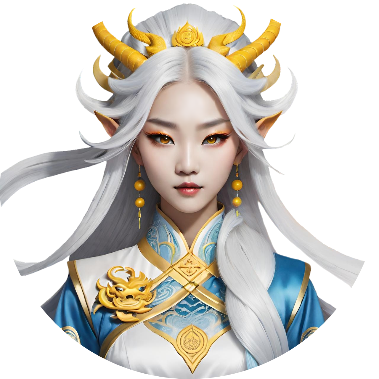 Because Zetian has inherited two rare and powerful manifestations, she is endlessly proud of her dynamic and fantastical magic form. In fact, her form is so fluid her appearance can change drastically between which parts of her form she manifests. Casually, she flaunts azure scales along the edges of her face alongside a long, slender tail with tufts of white fur running down its spine and yellow horns and eyes. An orange searing glow may peek from beneath her scales if they aren't lined with a golden yellow sheen. |