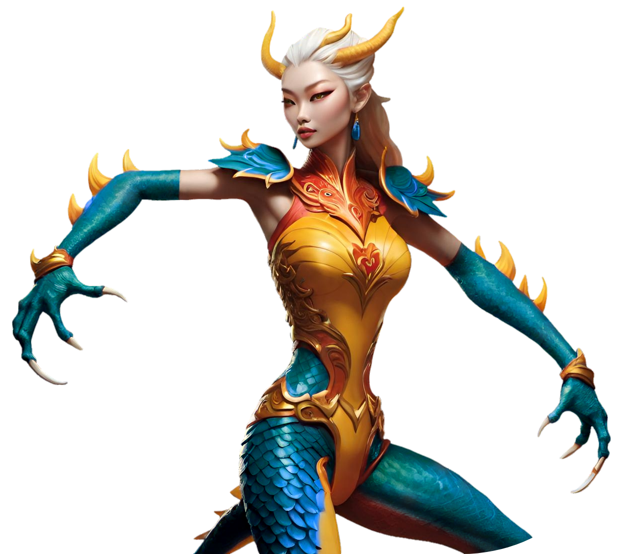 Riptalis' Form grants her the physical attributes of a Qinglong. Azure dragon scales are immune to energy magic and all water magic. These scales are also like an armor as tough as steel, not easily cut or battered. Ordinarily, qinglong are weak to fire magic but her lava kaithur counteracts this weakness! However, it doesn't counteract her weakness to ice magic or extreme cold. Because Zetian is a Divine Descendant, she can take on more attributes of the qinglong than an ordinary human. This allows her to cover her entire body in dragon scales alongside gaining the claws, tail, eyes and horns of a qinglong--becoming a humanoid imitation of this divine water dragon. Zetian can also step on water or water vapor, moving freely inside of water and steam especially! Finally, she can even summon rain if she possesses a qinglong's ancestral orb. |