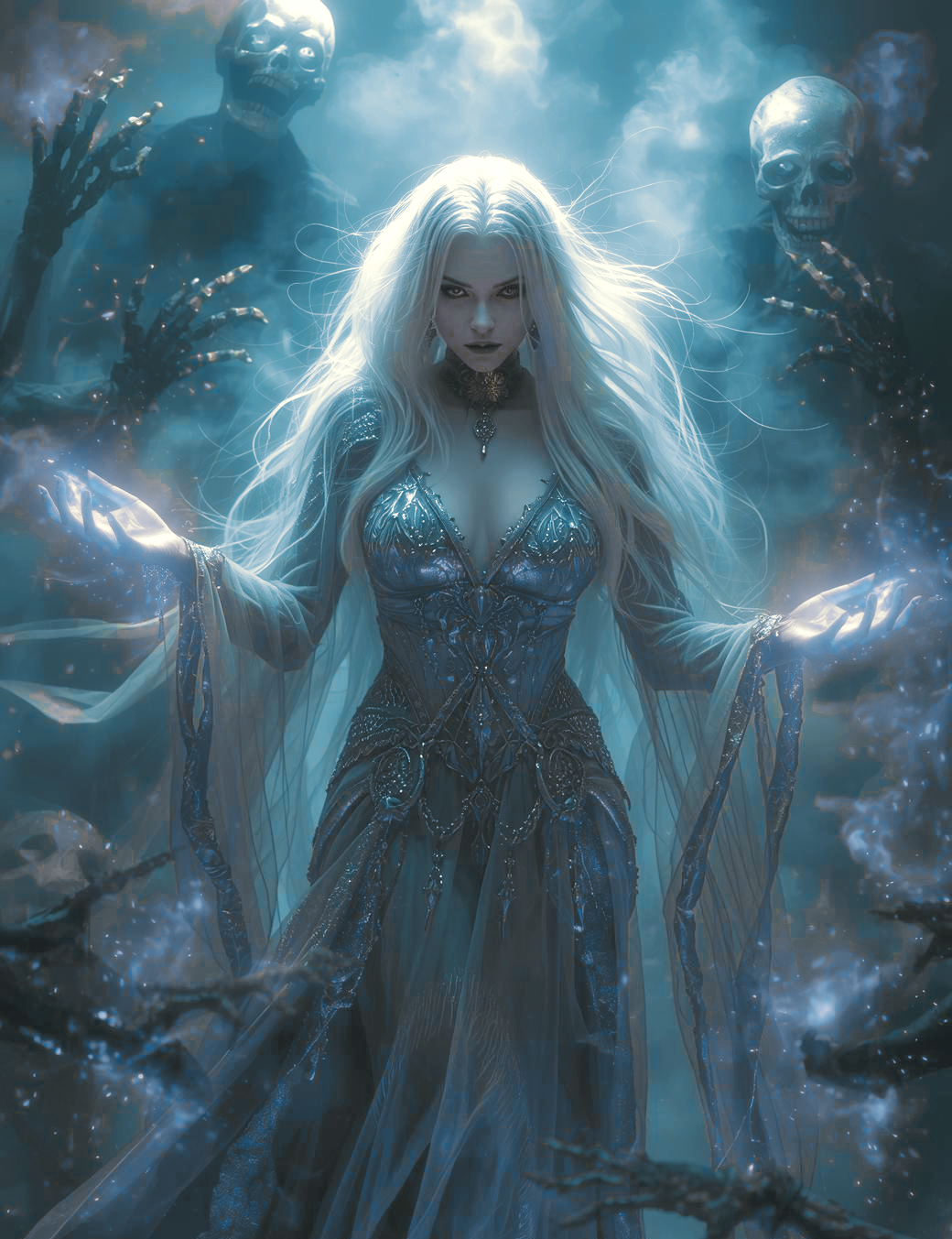 Elluriel had been a pirate queen long before she became a godling, cruel, brilliant, and devout in the way only the damned are devout. Many a soul and ship had she sent to her deep mistress thru her career upon the seas. In the twilight of the second age Elluriel betrayed her mistress, and usurped her mantle. Vivendall had desired to claim the power of the fallen spirit Tanifa and transcend to the realm of Shadow where the rules which bound her collection of souls would not apply. Elluriel however had other plans, slaying Vivendall and stealing her spiritual power she took the throne prepared for the deep queen herself. From that dusk bound domain of Cuan Scáithmhar she reaps the seas and the mortal coasts alike, stealing souls from their rightful passage and dragging them into her keeping. Some she takes by violence. Others she wins by temptation: promises of freedom from judgment, of power without consequence, of a place at her side when the living world finally drowns in dark.