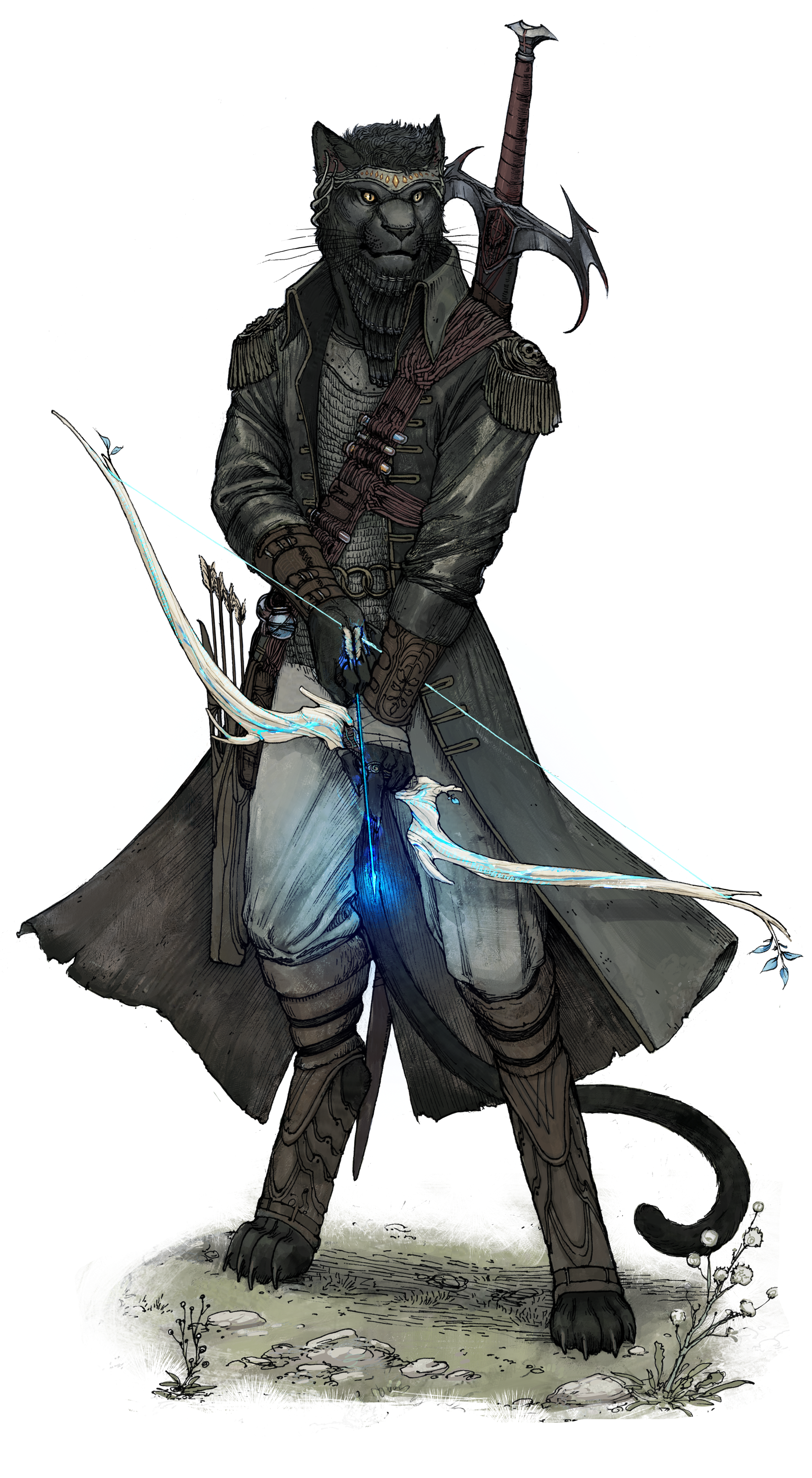 The Felaryn are catfolk shaped by survival rather than luck, a people who believe life is counted in narrow escapes rather than years lived. Known as the Ninefold, they grow up daring and bold, testing the world while they believe lives remain to be spent. As they age, caution replaces recklessness, and every decision carries the weight of what has already been survived. Felaryn adventurers are agile, observant, and keenly aware of risk, choosing when to press forward and when to walk away.