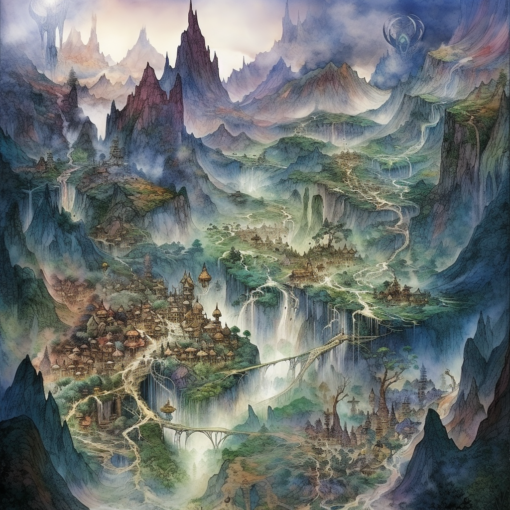 The River Oceanus slides easily from Amoria into the second layer, Eronia, where the landscape is rougher and the weather harsher. The river cuts great gorges throughout Eronia, and some of the most spectacular waterfalls in all the multiverse can be found along the mighty river’s crashing course. The dangers of Eronia are mostly natural, from rockslides to cliff faces, but most take it as a challenge from the plane itself to rise up and do better for themselves and one another.