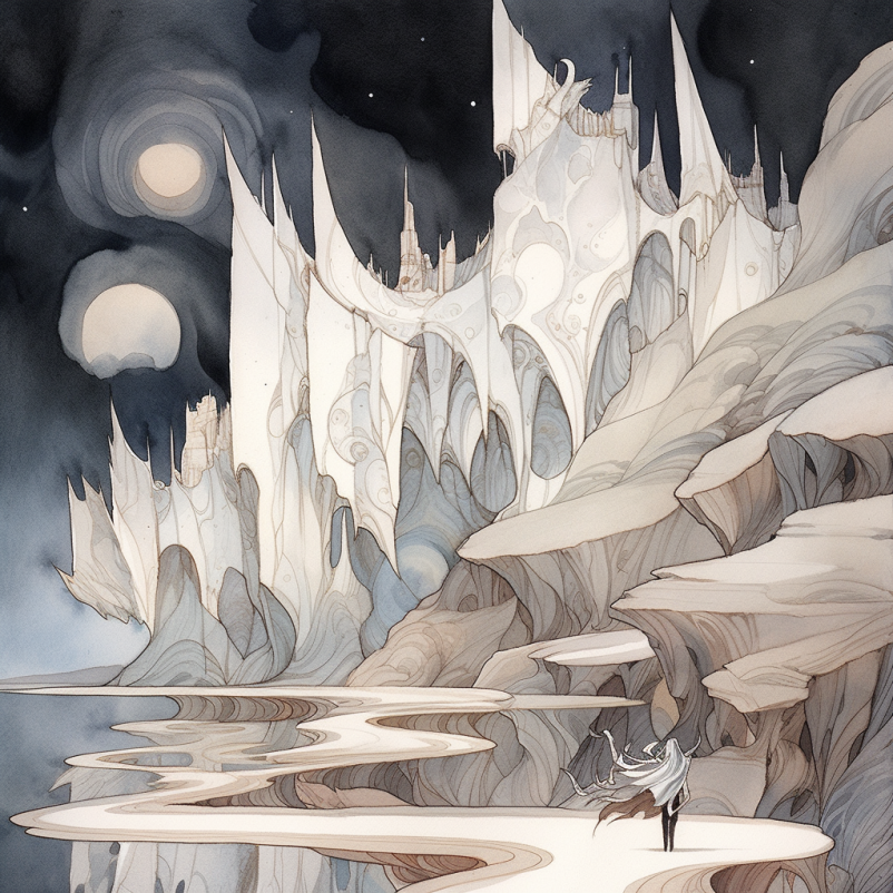 Solania is the Crystal Heaven, where a burnished silver sky hangs over the quiet slopes and glaciers. A luminescent fog shrouds most of the valleys on Solania, many of which hold deep mountain lakes fed by the towering nearby glaciers. Rich deposits of ore, from the rare to the mundane, run like solid rivers through the stones of the Crystal Heaven, and it is widely believed that Solania has more caves than any other layer, and the legendary Monastery of Seven Flowers hides somewhere among its majestic peaks.