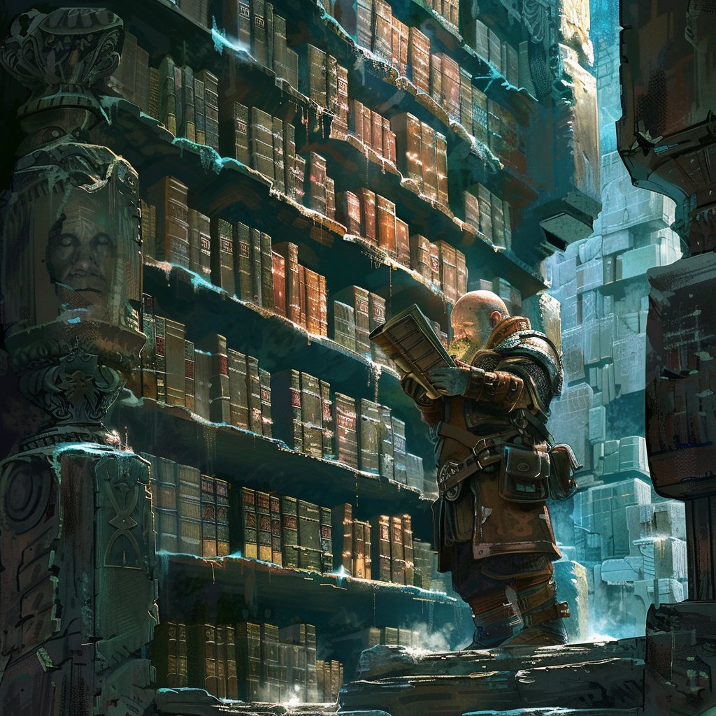 Though he resides on another plane, Dumathoin – dwarven god of secrets and mining – maintains a storehouse of knowledge on the Plane of Earth. It’s one of several planar libraries around the multiverse, but the dwarven monks that maintain it, the Keepers Under the Mountain, hold that this one is the largest. It sits in a tall cleft hidden somewhere in the Stony Expanse, protected by ancient dwarven magic to prevent unwanted prying eyes. The walls of the cleft are lined with shelves upon shelves of books, papers, scrolls, sheaves, and other records of note, ranging from the mundane to the fantastic.
