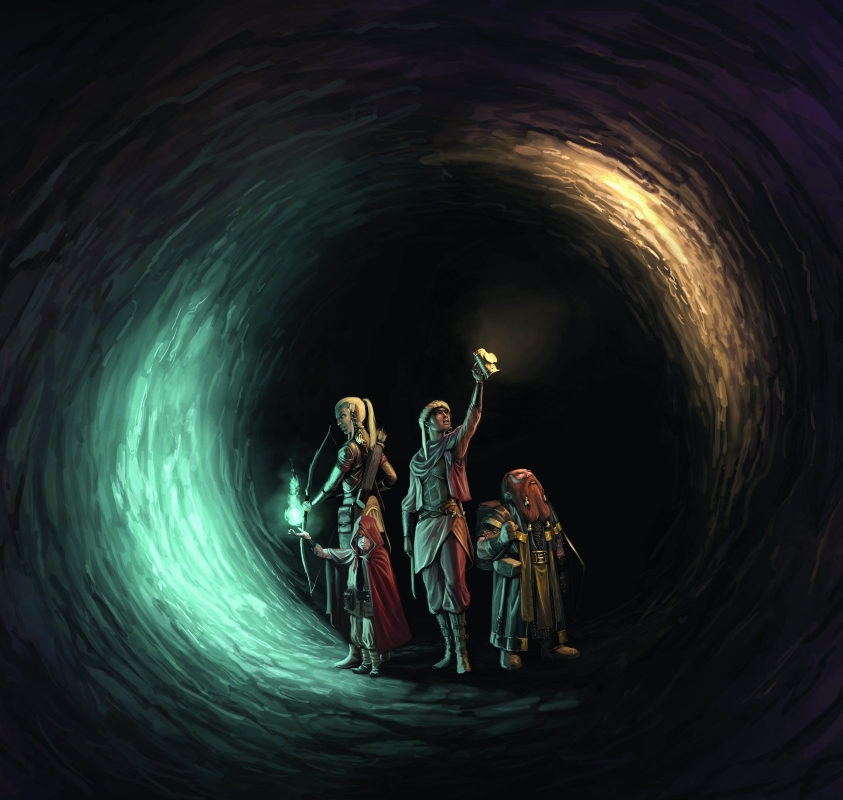 Getting lost in the Plane of Earth is perhaps the greatest threat to travelers beyond a collapsing tunnel or marauding beast, as there is no clear indication of any cardinal direction. Tunnels wind up and down, cross between each other, and cut into massive caves with no discernable pattern or thought. For travelers willing to risk the journey, however, great treasures and wonders can be found, whether it's the prize opal Koh Nur in the center of the Dao's Sevenfold Mazework or searching the chaotic Tunnels of Madness for the Heart of All Mountains or trying to escape the infamous Salt Dungeons of the Great Khan.