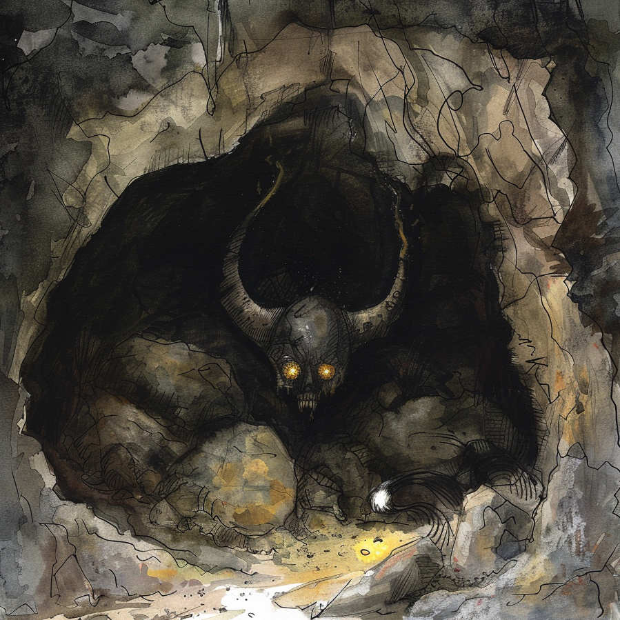 Monsters of all types prowl in the darkness. These include the gloomgaunt, loathsome bat creatures at one with the shadows, and the giant olms, toxic albino salamanders always looking for fresh meat. Cave goats, giant blind star slugs, and fearsome monstrous insects also crawl in the darkness. The River Styx winds through the upper layer of Pandemonium on its tour of the Lower Planes, and many monsters hide in the waters, knowing that the river provides regular traffic into the otherwise desolate tunnels.