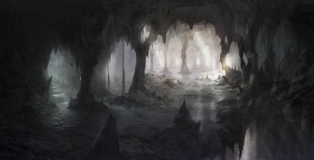 The caves and tunnels of Phlegethon are just as dark as the rest of Pandemonium, but they are accompanied by a persistent slimy wetness over all surfaces. Many caverns on Phlegethon hold stalactites and stalagmites of monstrous proportions, though no rivers or obvious explanation for the condensation have been found. The only other community of note on Pandemonium, Windglum, is found on Phlegethon, built around an enormous stalagmite.