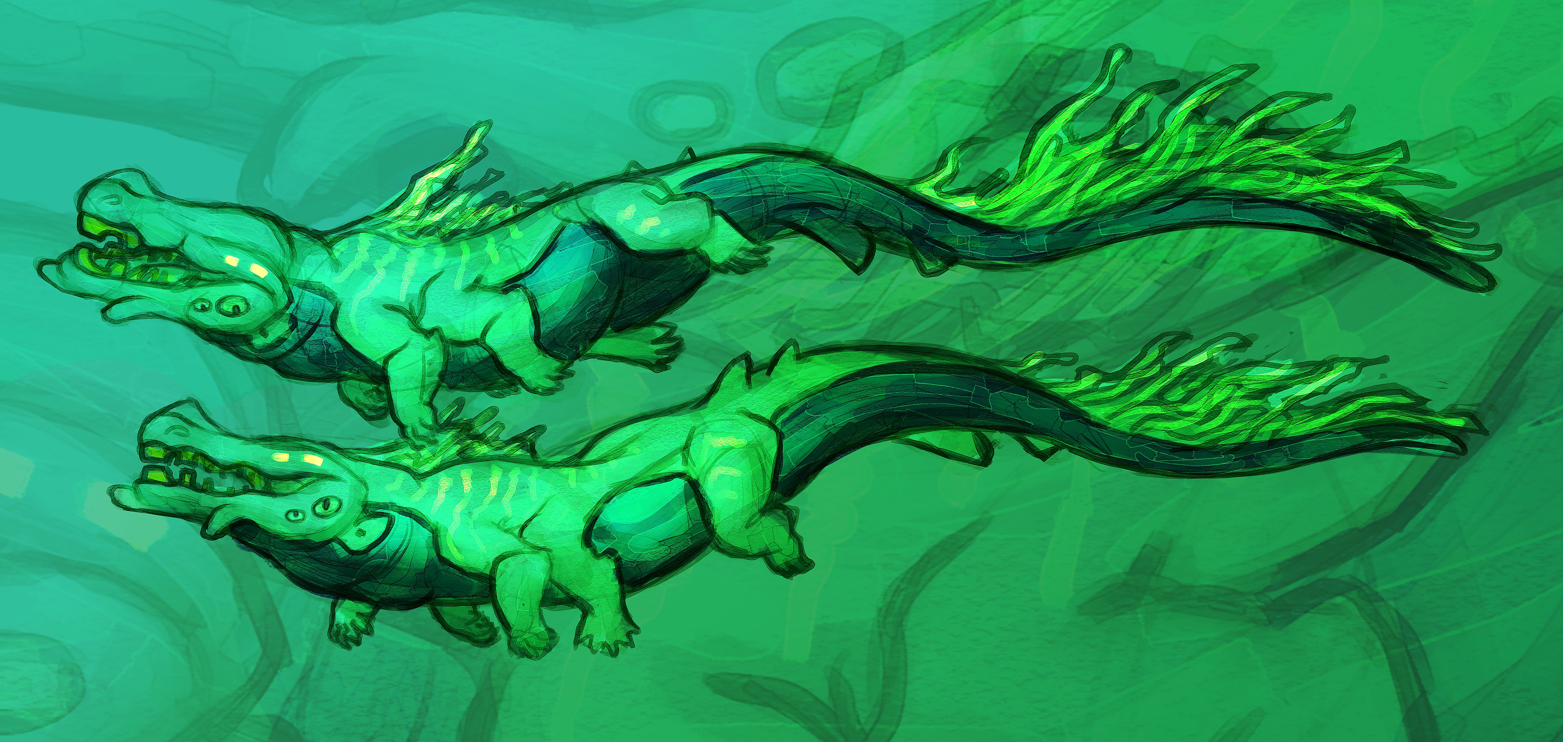 Unlike Crocodiles, Snare-snappers have an extra set of legs in the front that serve multiple purposes. They can be used to sprint, or they can be used to plant into the ground to reel in a catch with their tongue.