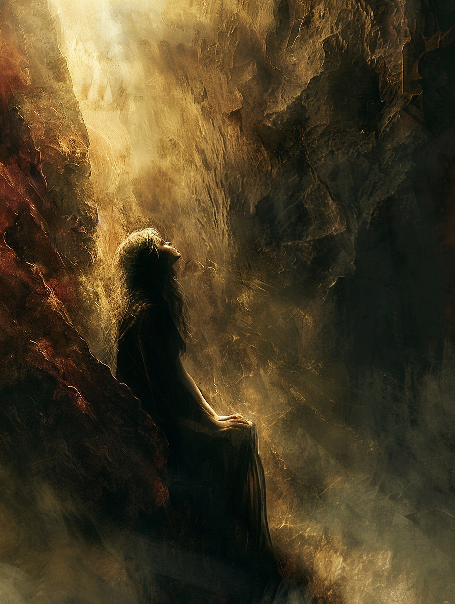 Se despertará en un rato. Ahora necesita recomponerse.Pero aún así, su cabeza y su cuerpo parecían moverse en medio de profundas y turbulentas ensoñaciones... ¿Qué infierno interior estaría viviendo el mago? Antxon quedó junto al cuerpo de Ainhoa, llorando amargamente por su amada mientras profería el juramento de que haría pagar con sangre mil veces al autor de este crimen. Sus hombres, -Fermín y Gabín- consternados, guardaban estoicamente la entrada de la cueva, protegiendo a su señor y al joven Vela, su paje y pupilo, que consternado y paralizado por el miedo, quedó acurrucado en un rincón de la cueva, consolado por el extraño cuervo que unos días antes, había hecho aparición en el bosque, y se había convertido en una especie de mascota. Antxon insistía en que había que darle al cuerpo cristiana sepultura, aunque de todos era sabido que Ainhoa, igual que su padre Ander Edurnegorri, nunca había profesado la fe cristiana. De hecho, en la destruida aldea de Guetaria no había iglesia alguna y los pocos cristianos del lugar solían acudir hasta Aya si querían asistir a misa o recibir sacramentos. Mientras tanto, Beñat se dedicó a investigar la cueva y contemplar de cerca el horror. Así encontró el cadáver de su madre, Miren, horrendamente torturado y muerto como al resto de las infortunadas. El dolor era insufrible, porque se puede entender la muerte, mas no tamaña crueldad. Raoul también siguió explorando la cueva y halló otra estrecha terraza que asomaba a la galería principal, a modo de palco, iluminado por una línea de hogueras aún ardientes. En el centro de la misma un círculo de velas apagadas, aún tibias rodeaba un extraño símbolo arcano. No hallaron huellas que salieran más allá de las puertas de la Cueva. Solo se veían las propias pisadas tambaleantes de las mujeres caídas, dejadas en el fango. Se apreciaban huellas de pezuñas, que atribuyeron a los dusios, algunas de las cuales desaparecían justo en la galería sur, la que se abría a un amplio prado, donde se encontraba el cadáver de Ainhoa. Desde allí, una serie de pisadas, humanas esta vez, se veían claramente salir de la cueva para dirigirse a la otra entrada de esta. Fue en ese instante en el que Duncan recobró la consciencia. Había pasado más de una hora, y aunque visiblemente fatigado, estaba consciente. Su rostro tenía el semblante de haber recibido alguna extraña epifanía. De lo que sus sueños le revelaron, nada dijo. Sus compañeros le informaron de sus hallazgos. Primero se dirigió al cuerpo de Miren y pidó permiso a Beñat para hablar con su espíritu... Así Duncan pudo ver el alma de la desdichada que le dijo: