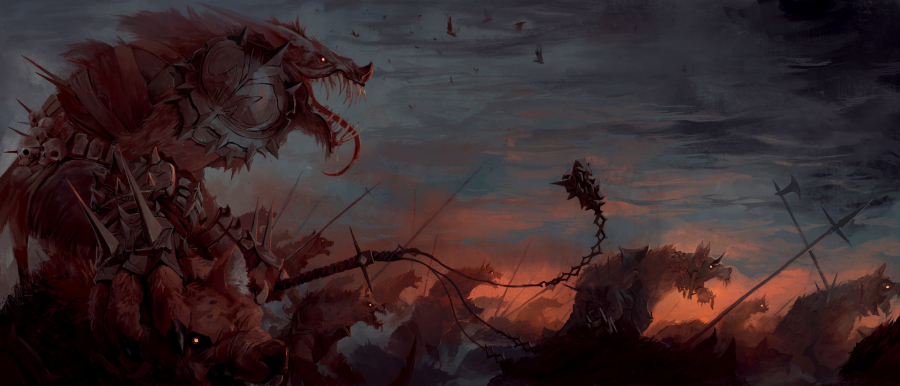 The Demon Prince Yeenoghu’s bastion lies in the blood-soaked savannah. His seat of power is a massive, mobile construction forged from the weapons and bones of his victims. Yeenoghu’s conquered foes and disgraced fighters drag it through Ba’almot, towing it after the chaotic hunts of their demonic master.