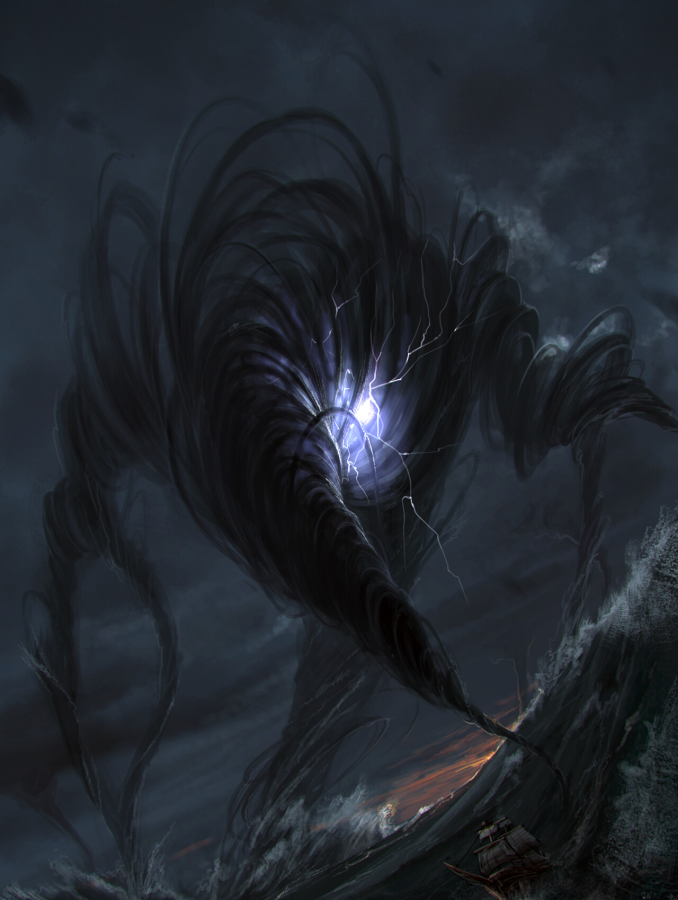 Apart from the wind which is both common and predictable, extreme weather is certain and completely unpredictable. The dreadful storms tear down civilizations, wash denizens out to sea, and crush them beneath shifting earth. Often striking without regard for geography or logic, the weakest weather events start at a tropical cyclone, category 1 tornado, magnitude 2.5 earthquake, and similar severities. Arcane weather also periodically rages across the splinter. Apart from the devastating weather, lush, fast-growing temperate plains and forests grow throughout.