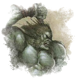 They say that the demon Kostchtchie was once a hateful and hideous goliath who, in a state of berserk rage, pursued a powerful demon into Pandemonium to kill it. Kostchtchie cracked open its ribcage and ate its still-pulsing heart. The ichor transformed him into a demon. The Deathless Frost appears as a 30 ft tall frost giant with grotesquely corded, bulging muscles. Kostchtchie is never seen without his prodigiously massive adamantine maul. Dozens of skulls are woven into his thick, matted hair. Legends say that the spirits of their previous owners haunt the skulls.